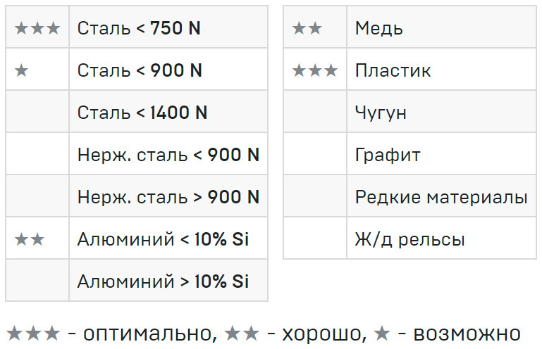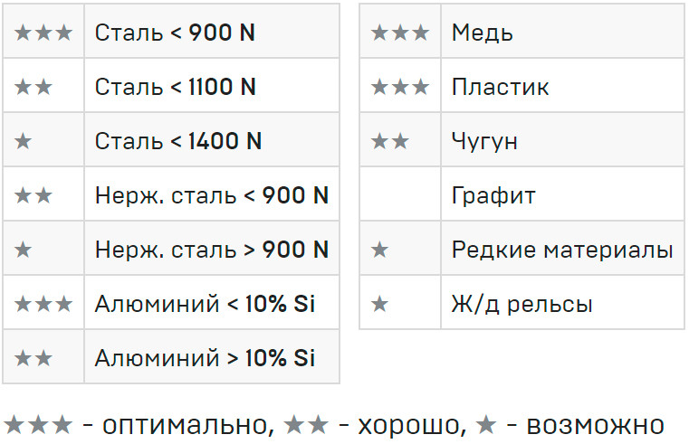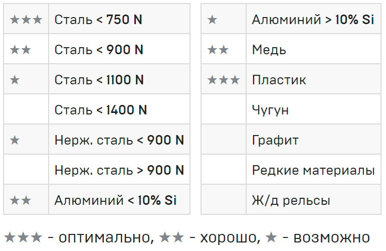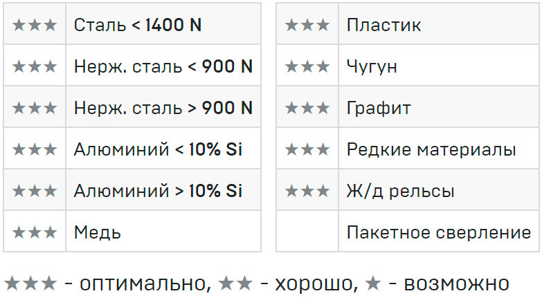 • Для стали, титана, чугуна, цветных металлов, графита, стекла и пластика